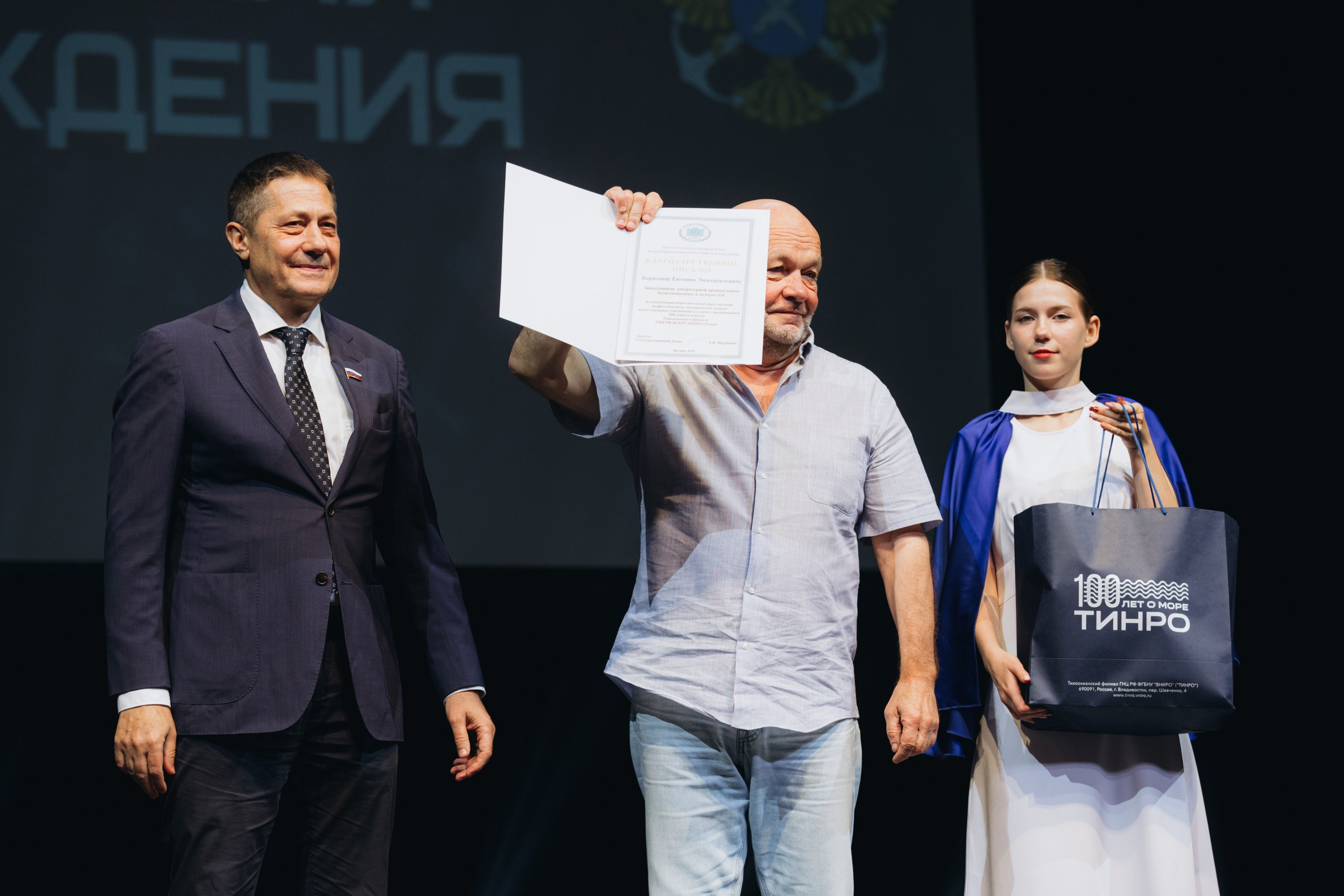 Заместитель руководителя Росрыболовства Василий Соколов душевно поздравил коллектив ТИНРО, пожелав «прямой дороги – вперёд и вверх», и вручил сотрудникам Института документы о присвоении звания «Почётный работник рыбного хозяйства», медали «За заслуги в развитии рыбного хозяйства России», ведомственные благодарности и почётные грамоты.