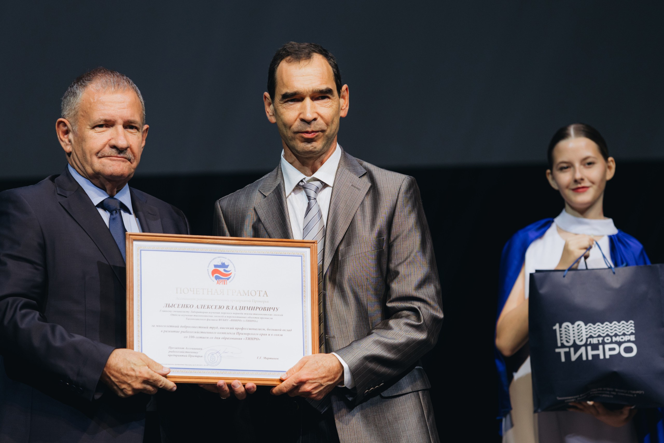 За многолетний добросовестный труд, вклад в развитие рыбохозяйственного комплекса Приморского края и в связи со 100-летним юбилеем ТИНРО Почётной грамотой Губернатора Приморского края были награждены: