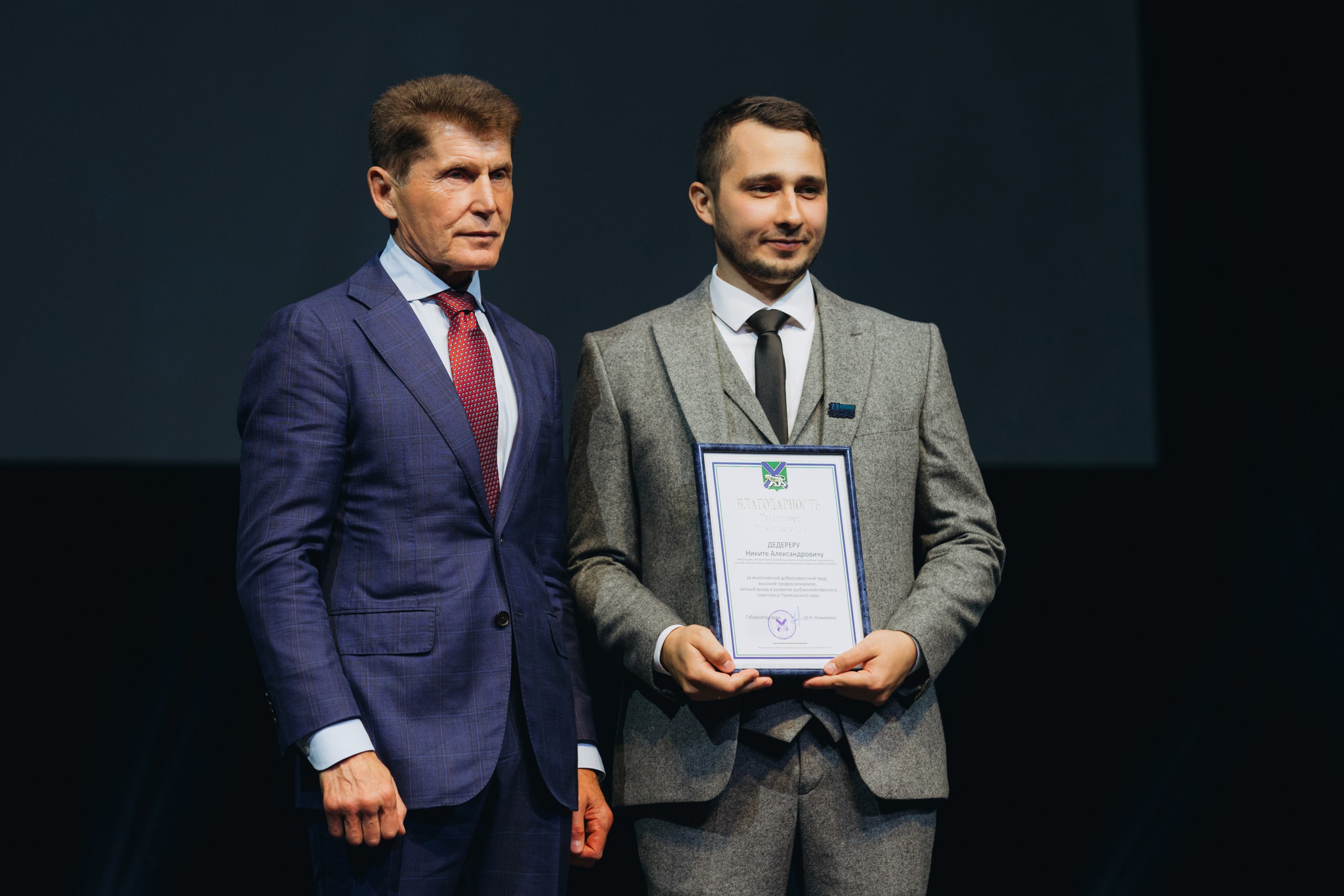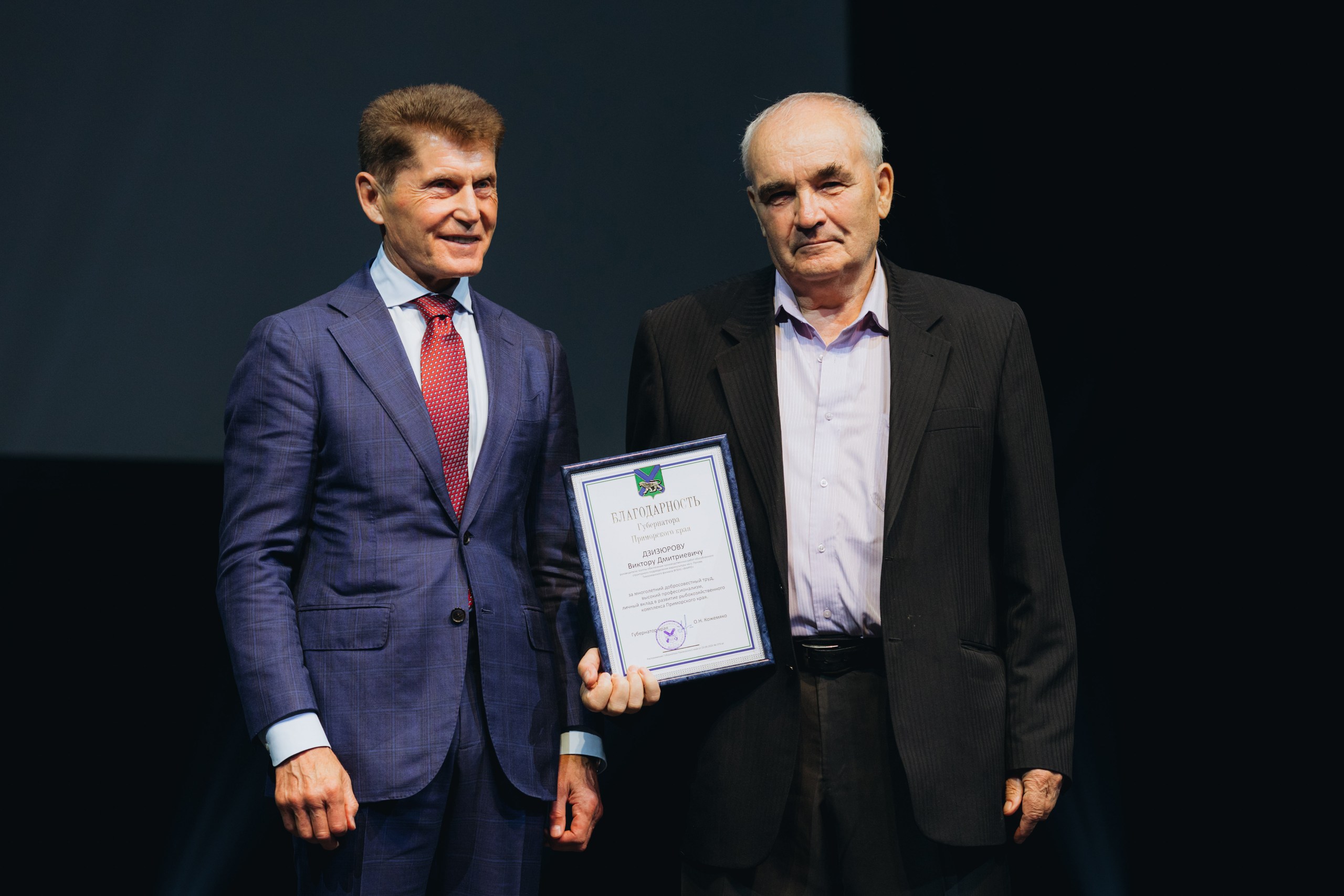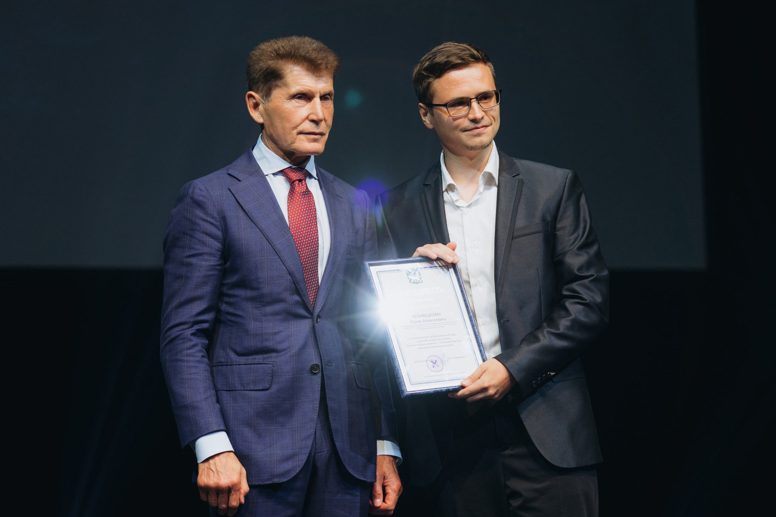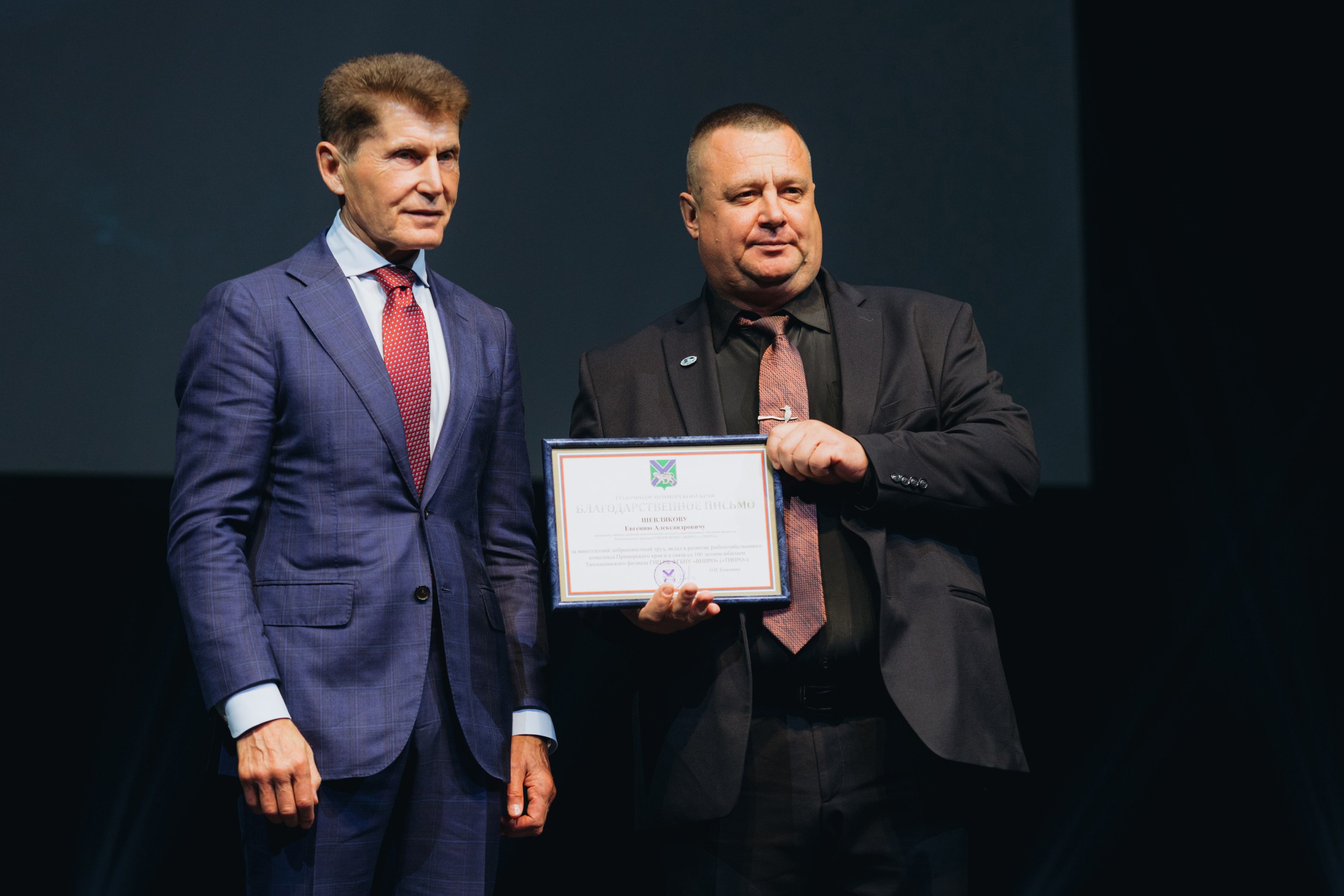 В торжественной обстановке Олег Кожемяко вручил заместителю директора – руководителю Тихоокеанского филиала ГНЦ РФ ФГБНУ «ВНИРО» («ТИНРО») Алексею Байталюку Почётную грамоту Губернатора Приморского края, адресованную коллективу ТИНРО − за многолетнюю добросовестную работу, высокие профессиональные достижения в научно-исследовательской деятельности.